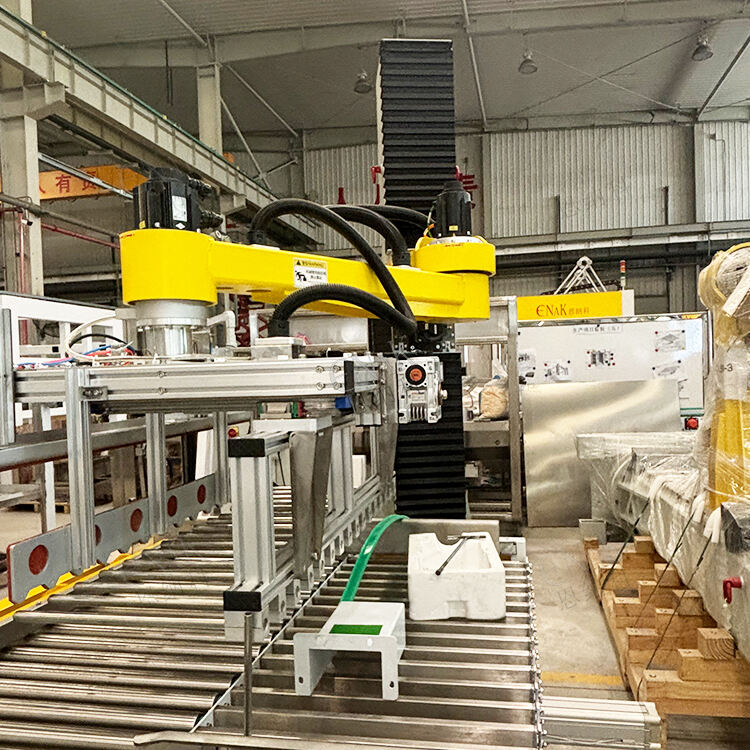 The Single Column Automatic Carton Palletizing Equipment (ENK-MD1800-150) launched by ENAK (Tianjin) Automation Equipment Co., Ltd. is a high-efficiency device specially designed for automatic palletizing of carton products. Adopting a single-column structure design, it balances stability and space flexibility, which can replace manual work to complete accurate grabbing and stacking of cartons. It is widely suitable for carton packaging and palletizing needs in food, daily chemical, wine, electronics and other industries, helping enterprises achieve automation upgrades in the packaging process.