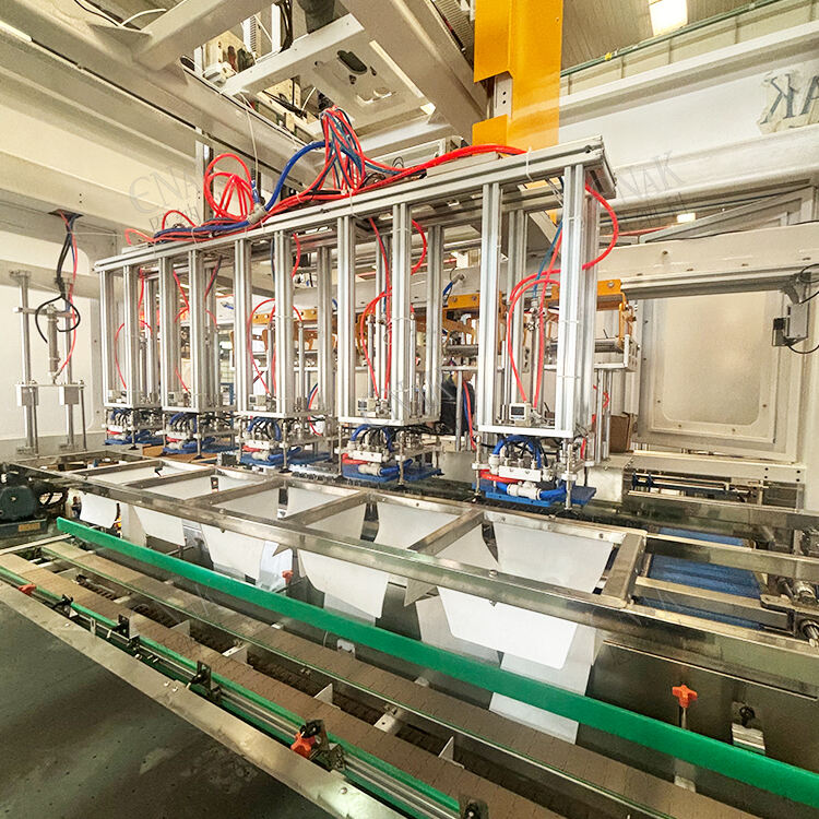 Check the equipment appearance to ensure the safety door is closed and the bottle grippers are undamaged. Connect the three-phase 380V power supply and 0.6-0.8mpa compressed air, and start the main switch. Enter the "Parameter Setting" interface through the touchscreen, input parameters such as the number of bottles to be gripped and conveyor speed according to the specifications of the cosmetic bottles (e.g., diameter, height) and carton size. After completion, click "Self-Inspection"; the system will automatically detect the status of each component and enter the standby mode after passing the self-inspection.